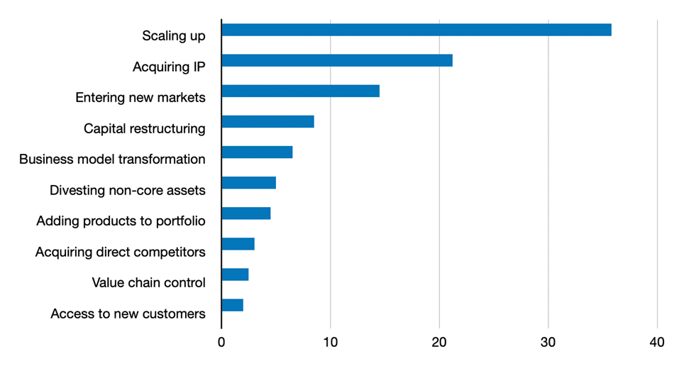 - A desire to acquire IP for those businesses that do not own their technology – 21.2%